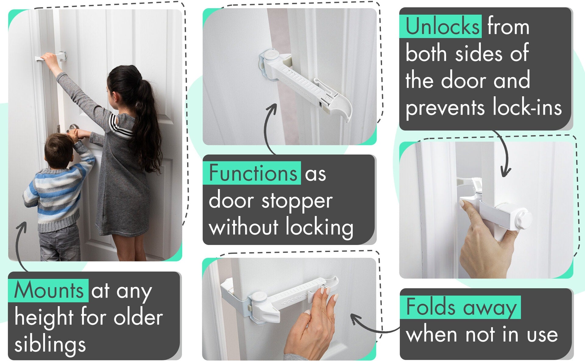 DOORWING® Replacement Latch + Extension Arm, 1 set of 2 parts in total. White color ABS plastic.